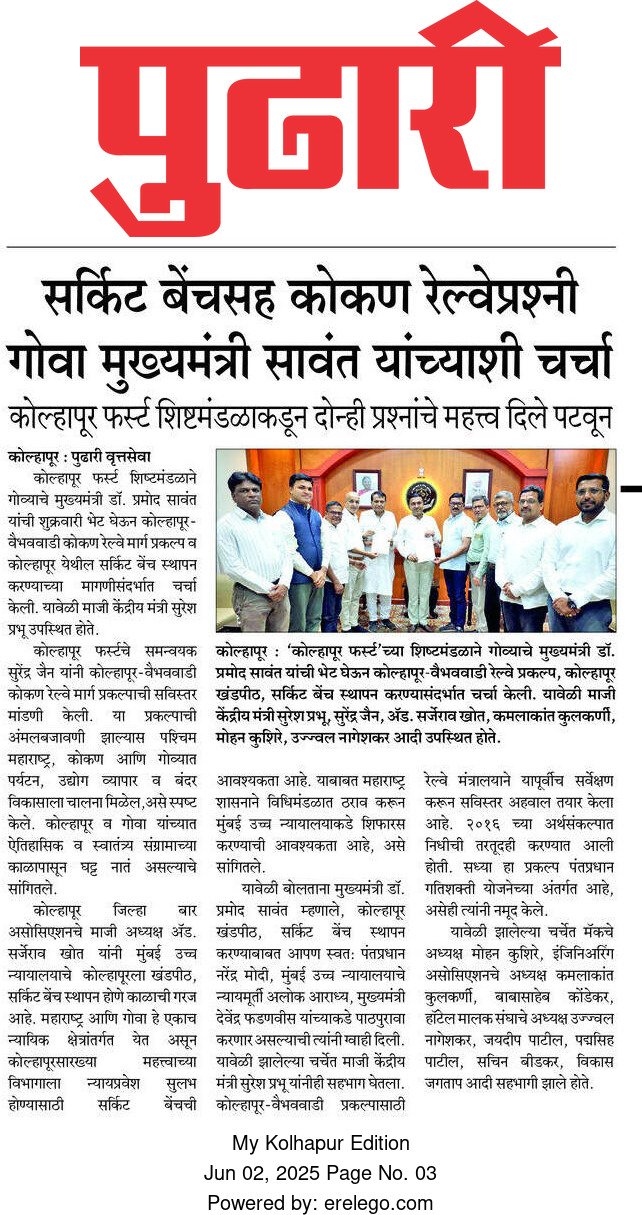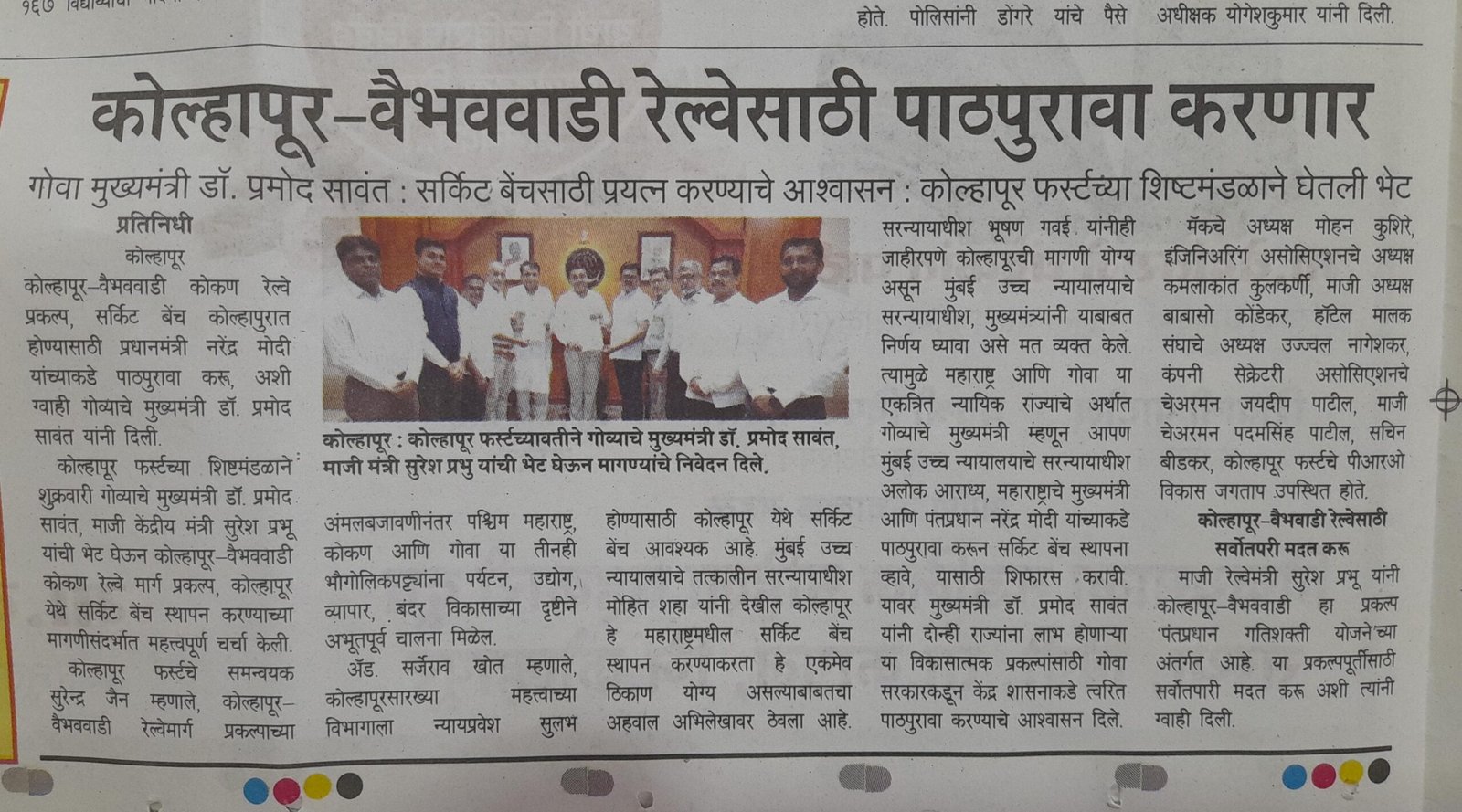 कोल्हापूरच्या सर्वांगीण विकासाच्या व्हिजन ने कटिबद्ध असलेल्या अनेक नामांकित संस्थांच्या पुढाकारातून कोल्हापूरचा शाश्वत विकास साध्य करण्यासाठी, कोल्हापूरचे ऐतिहासिक आणि धार्मिक महत्व अबाधित राखून नेक्स्ट जनरेशनला अपेक्षित कोल्हापूर बनविण्यासाठी – “कोल्हापूर फर्स्ट”