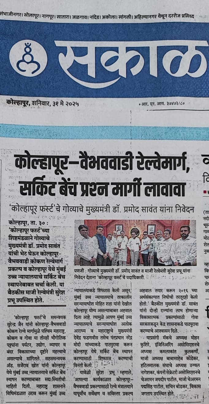 - मुंबई उच्च न्यायालयाचे सर्किट बेंच कोल्हापूरात स्थापन करणे .
